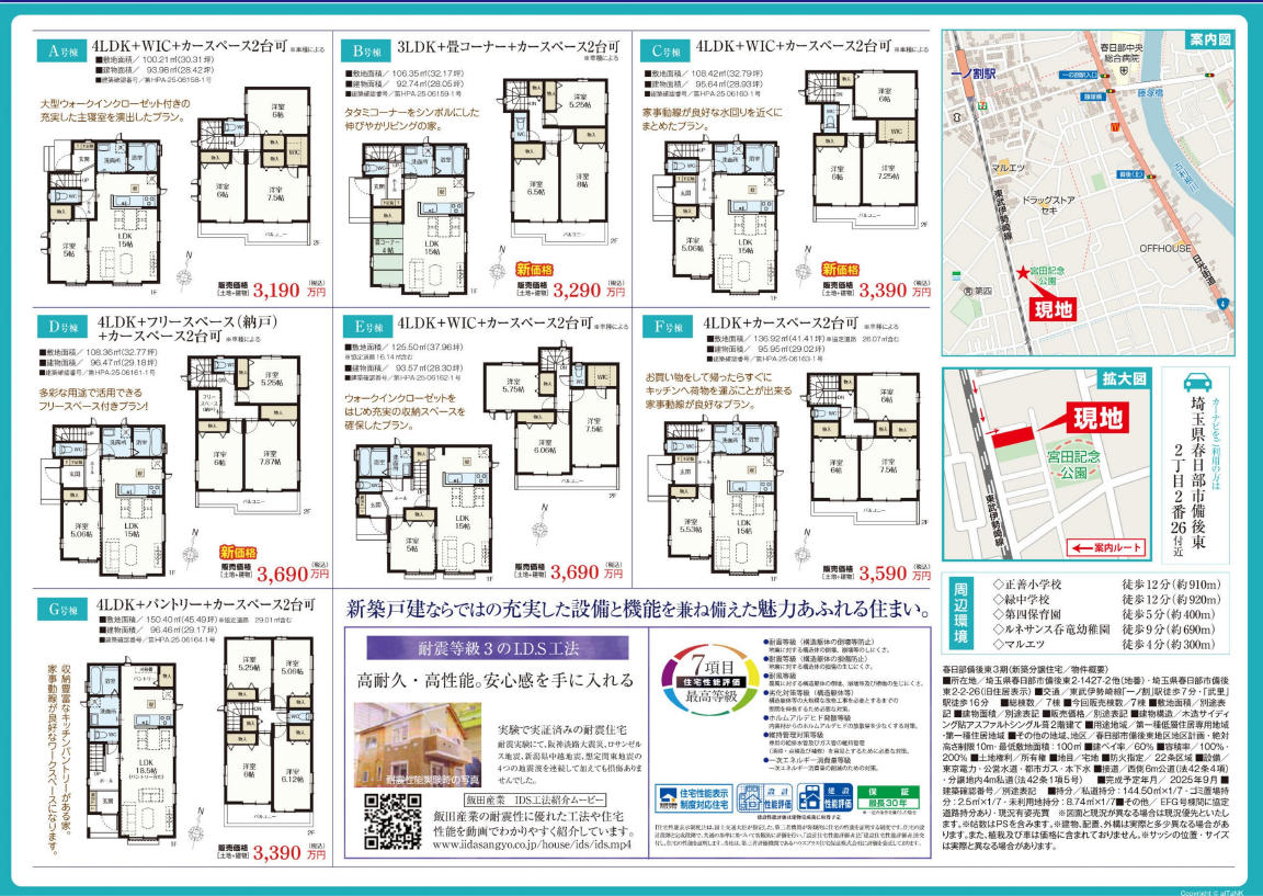 仲介手数料は無料です。こちらは備後東2丁目にあります全7棟の新築分譲のD号棟となります。土地32.77坪で、建物は令和7年9月完成の4LDK+フリースペース(納戸)+駐車スペース2台分です。前面道路は南側4mの開発道路となります。なお、A号棟の西側には東武伊勢崎線が走っておりますので多少電車音が気になるかもしれません。現地では電車音がどの程度聞えてくるのか・・・実際に体験なさってくださいね。駐車ペースに関しましては建物の南側に並列で2台分です。ご希望の車種が駐車可能かどうか・・・駐車し易いかどうか・・・こちらも現地にてご確認ください。日当たりに関しましては南側が道路ですし、建物の前面が並列の駐車スペースですので心配は要りません。洗濯物も良く乾きそうですし、庭先でプランターガーデニングも楽しめそうですよ!間取りに関しては、ファミリータイプの4LDKの造りとなり、2階にフリースペースがございます。生活施設において、駅は一ノ割駅まで徒歩7分程度で通勤通学共に便利です。買物施設は、マルエツ一の割店が約300m(徒歩4分)にあり大変便利です。学区域は、正善小学校(約910m)、緑中学校(約920m)エリアとなります。小学校までは大通りを渡る心配もありませんし、小中学校共に苦にならない距離かと思います。ライフラインは、都市ガス、本下水が整備されております。完成住宅内覧ご希望の方はお気軽にフリーダイヤル0120-40-2103までご連絡ください! 【ライフインフォメーション】正善小学校 約910m、緑中学校 約920m、マルエツ一の割店 約300m、ドラッグストアセキ一ノ割店 約290m、ルネサンス呑竜幼稚園 約690m、第四保育所 約400m、宮田記念公園 約240m 【建物仕様・設備】ベタ基礎・基礎パッキン、24時間換気システム、システムキッチン、高効率給湯器、複層ガラス、TVモニター付インターホン、シャワートイレ(1F・2F)、シャワー付洗面化粧台、階段・浴室・トイレに手摺設置、玄関断熱ドア、床下収納庫、外壁サイディング 【設備】都市ガス・本下水 【備考】住宅性能評価制度で6項目の最高等級取得(耐震等級(倒壊)/耐震等級(損傷)/劣化対策等級/耐風等級/ホルムアルデヒド発散等級/維持管理対策等級) ※ハウスプラス住宅瑕疵保険採用 ※フラット35S対象物件(当初10年間 0.3%の金利優遇がご利用可能です)、電力供給の為、敷地内に電柱・及び支線が入る場合があります。外構フェンス、一部シャッター、物干し台、網戸、カーテンレール、照明器具、TVアンテナなどはオプションです。電波障害によるケーブルTV、共聴アンテナ等の引込み工事は買主様のご負担となります。決済時の司法書士は売主様の指定となります。 【施工会社】(株)飯田産業 【新築戸建の確認ポイント】日当たり状況・前面道路状況・付帯設備・保証などです。 ◆前面道路の過去の水災被害の有無に関しては、個別に調査いたしますので、ご希望の方はお気軽にお問合せください。 ◆資料のご請求・物件に関するお問合せ・内覧のご予約は、メール:info@style-p.com フリーダイヤル:0120-40-2103まで、お気軽にお問合せください。ご連絡お待ちしております! 【重要】現地には販売業者さんがいらっしゃいます。必ずしも仲介手数料無料とは限りませんので、仲介手数料無料でご検討の方は必ず弊社までご連絡ください! |