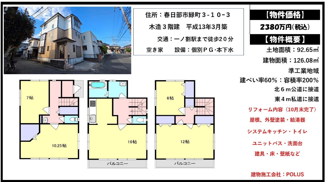 春日部市緑町3丁目10−3 2,380万円 一ノ割