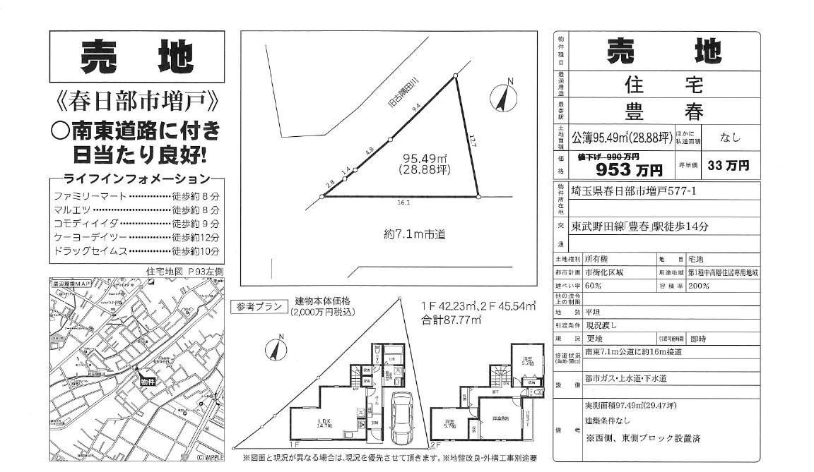 仲介手数料は正規料金です。こちらは増戸にございます、広さ28.88坪の売地です。