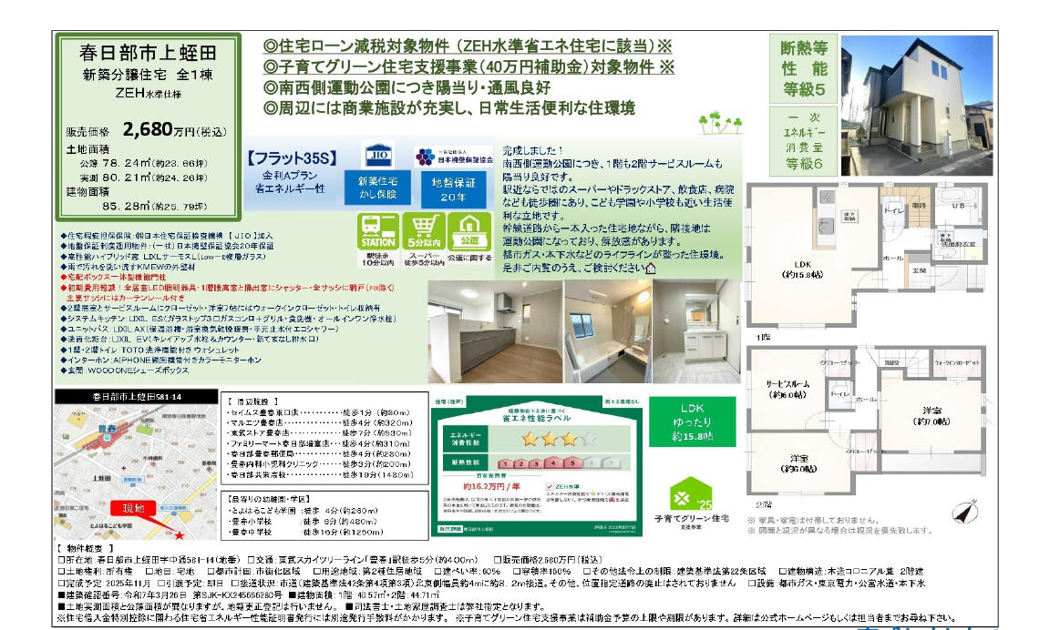 こちらは下蛭田にございます全4区画の分譲地の2号棟です。 土地40.35坪、建物は令和7年12月に完成、間取りは4LDK+駐車スペースです。 |